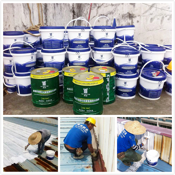 青龍公司中山經(jīng)銷商張總成功承接了這一防水補(bǔ)漏工程。經(jīng)過(guò)實(shí)地仔細(xì)檢查,并經(jīng)與客戶詳細(xì)協(xié)商,最后敲定采用青龍公司CQ103丙烯酸酯高級(jí)彈性防水涂料和CQ104單組份濕固化純聚氨酯防水涂料的組合補(bǔ)漏方案。青龍CQ103丙烯酸酯防水涂料具有良好的耐老化、延伸性、粘結(jié)性、成膜性及耐高溫性,因此非常適合在鐵皮房屋頂作整體涂刷;而屋頂排水溝則采用CQ104單組份濕固化純聚氨酯防水涂料。