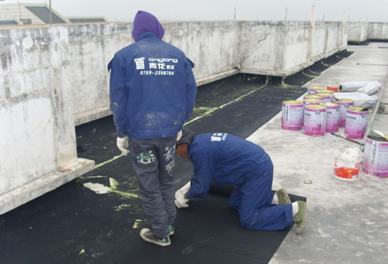 該項(xiàng)目需要維修的屋面防水維修改造工程,總共49棟。其中南苑包括單身公寓30棟,三區(qū)包括探親樓及幼兒園19棟。項(xiàng)目不僅要求防水,還要保溫。由于改造工程規(guī)模較大,施工難度高,且工期短,經(jīng)青龍公司技術(shù)工程師多次實(shí)地綜合勘察,最后選用了青龍RJS208反應(yīng)性聚合物水泥涂料和高分子防水卷材復(fù)合防水工法,在處理好基層施工面上涂刷RJS208(CQ113)成膜,并以此為粘合劑,直接粘貼高分子卷材,并以防水隔熱磚代替原有的方階磚。經(jīng)過青龍公司精心施工,最后如期完成。
