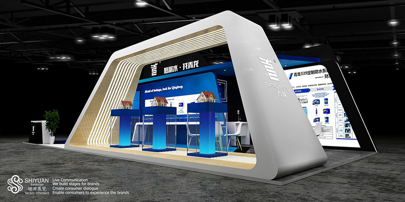 青龍防水展館整體呈現(xiàn)出極簡流線型的,如公司防水涂料流水般的圓滑流暢風(fēng)格。它在原有青龍藍(lán)的基調(diào)基礎(chǔ)上加入咖啡色作為誘導(dǎo),讓整個(gè)空間色彩飽滿豐富,既有時(shí)尚大氣的熱情奔放,也有極簡輕奢的科技風(fēng)范。