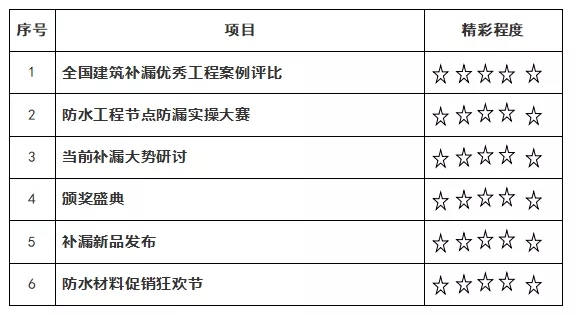 大賽上,來自全國的防水師傅、技術(shù)人員或老板,聚集一堂,防水師傅參加建筑節(jié)點(diǎn)防漏實(shí)操大賽,技術(shù)人員或老板分享優(yōu)秀補(bǔ)漏工程案例,并能聆聽成功人士的經(jīng)驗(yàn)和專家點(diǎn)評,有助于你總結(jié)他人的經(jīng)驗(yàn),更好地結(jié)合個人實(shí)際情況,開創(chuàng)屬于自己的事業(yè)。
