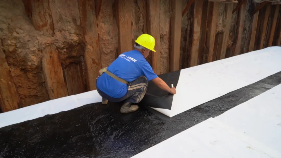 該標段防水項目長度達到3km,底板防水設計的做法是青龍1.2mmHDPE高分子自粘膠膜帶沙粒,管廊的側(cè)墻和頂板所用的防水材料為1.2mmHDPE單面自粘膠膜。目前側(cè)墻的防水施工已經(jīng)全部完成,頂板的防水施工也將在工期內(nèi)很快完成。
