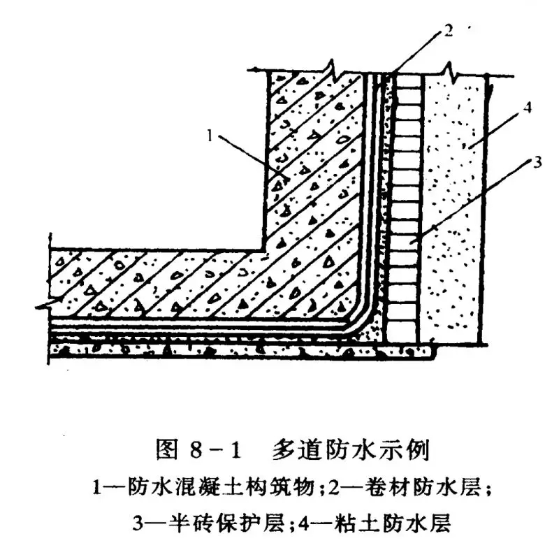 (1) 建筑地下防水一般為砼結(jié)構(gòu)自防水加卷材防水層。地下工程滲漏水的原因主要涉及到材料、設(shè)計、施工等多方面因素,重點是施工質(zhì)量控制。