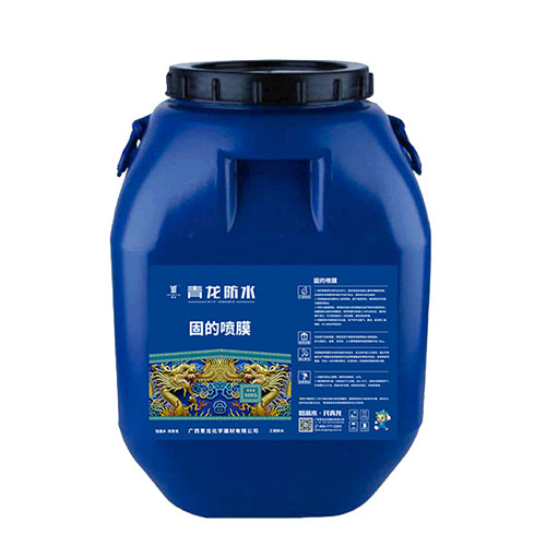 固的噴膜材料組成為雙組分,在主液中加入引發(fā)劑,通過專用高壓無氣噴膜系統(tǒng)將配制好的溶液等量輸送到噴槍外交叉混合,高速噴射到基面,可在1~5秒內(nèi)瞬間聚合,形成具有一定強(qiáng)度和韌度的防水膜。